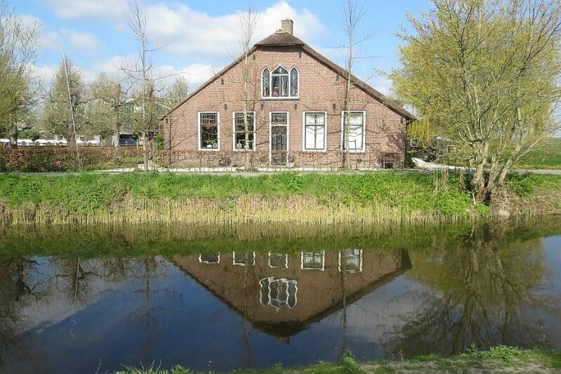 Boerderij met engelenraam. Oudewater, langs riviertje de Linschoten. Foto: 23april 2021