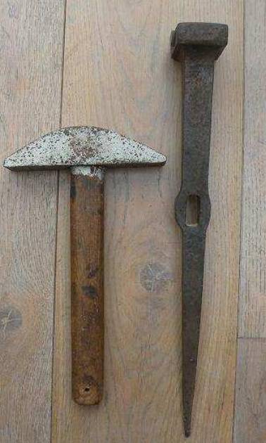 Een paar voorbeelden van haarspit, haarhamer en zeis.