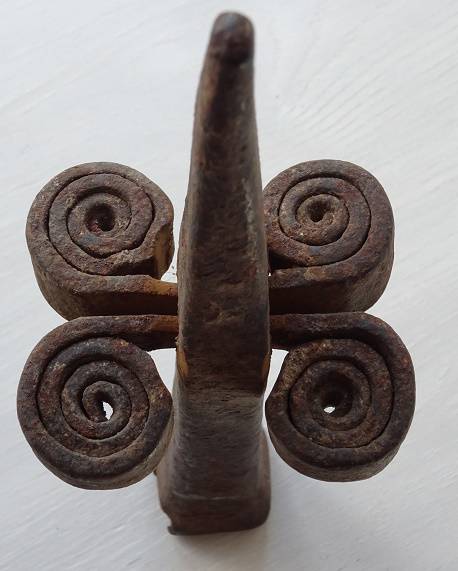 Een bijzondere bodemvondst. 18e/19e eeuwse haarspit met vier gesmede krullen. Coll. Kees Verkaik