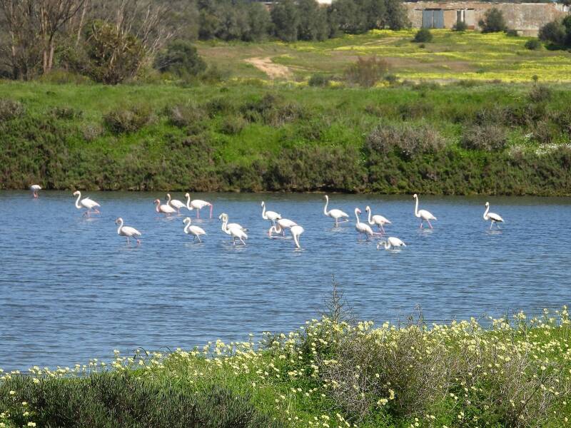 Flamingo's nabij Faro in een zoetwaterplas in het natuurgebied van Rio Formosa.