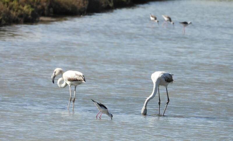 Diverse lepelaars werden gezien bij de pier van Santa Antonio.