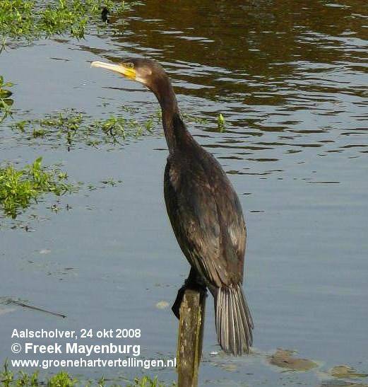 Aalscholvers zie je tegenwoordig hun “werkgebied” steeds meer verleggen. Ze jagen ook op vis in boerensloten in graslandpolders. Zelfs in hele smalle slootjes en in de stadsgrachten van de stad Gouda.
