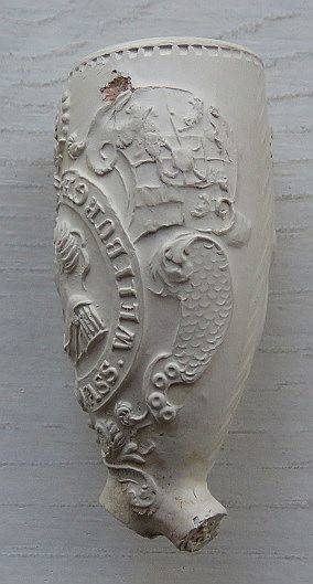 Waarschijnlijk uitgebracht bij hun huwelijk. Omstreeks 1625. Bodemvondst: Boskoop Tuinderij.