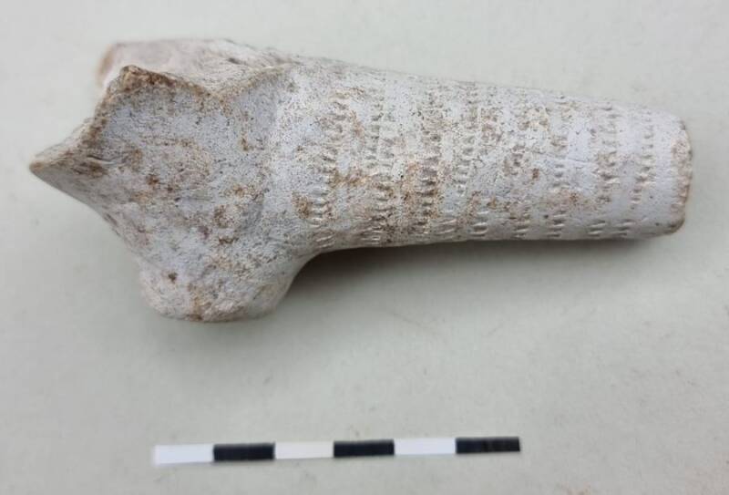 Kleipijp (part verz HB). Zeldzaam barokpijpje bekend staand als Elisabethpijpje met versiering van