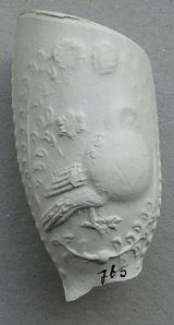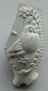 Goudse kleipijpen met de afbeeldingen van een duivin en doffer waren in de 18e eeuw blijkbaar erg gewild bij het rokende publiek want ze worden als bodemvondst vrij veel gevonden. Het succesvol uitbrengen van zo'n kleipijp viel natuurlijk ook de andere Goudse pijpenmakers op die dit type niet in hun assortiment hadden. Aannemelijk is het dat ze dan snel een mal lieten (na)maken die sprekend op de kleipijp leek die zo succesvol was. Misschien lieten ze die mal wel maken bij de dezelfde graveur die de bron van zo'n succesvolle pijp was. Omdat hier onderstaand een flinke serie parelnaadpijpjes met een duivin en doffer wordt afgebeeld kan mooi het verschil in uitvoering worden vergeleken. Wat allereerst aan deze kleipijp opvalt is dat er op vrijwel geen enkel exemplaar initialen van de pijpenmaker voorkomen behalve het exemplaar hieronder afgebeeld.
