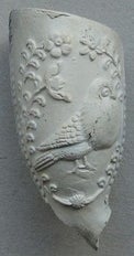 Parelnaadpijpjes met doffer en duivin. 1e helft 18e eeuw.