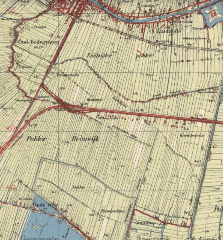 Dit slootje wat tot loopt tot op (achtergrond)de Prinsendijk heeft de topografische naam Suyderkade.