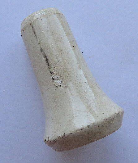 Knop van porselein van een kast. Met schroefdraad. Maat: Lang 4,5 cm. Diameter 2 tot 3 cm.
