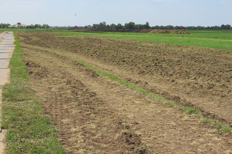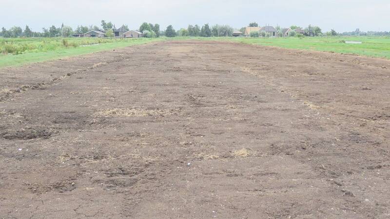 Foto gezicht op de s-Gravekoopse Dijk met geplagd perceel.