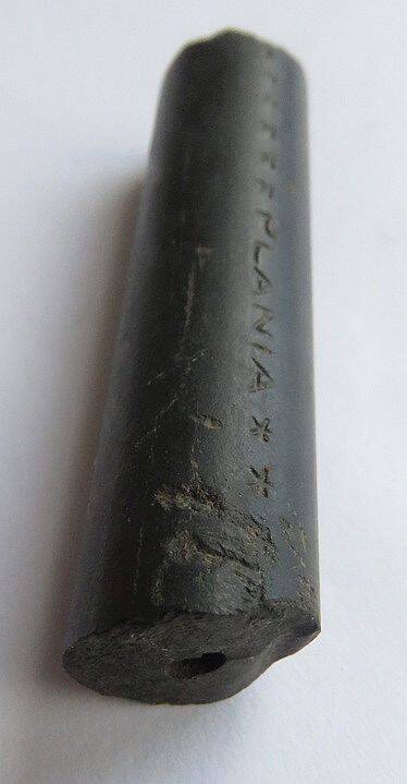 Stukje pijpensteel in zwart met de naam PLANIA met sterretjes. Leeftijd. 19e/begin 20e eeuw?