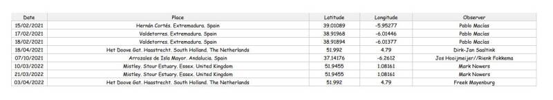 Foto gestuurd naar de Rijksuniversiteit Groningen (RUG). Een overzicht met terugmeld gegevens werd toegestuurd vanuit Spanje.