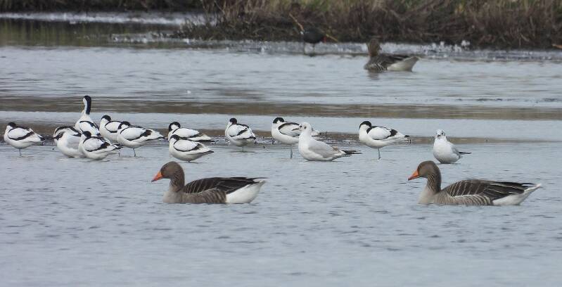 De meeste vogels zaten in de luwte aan de westkant van het gebied.
