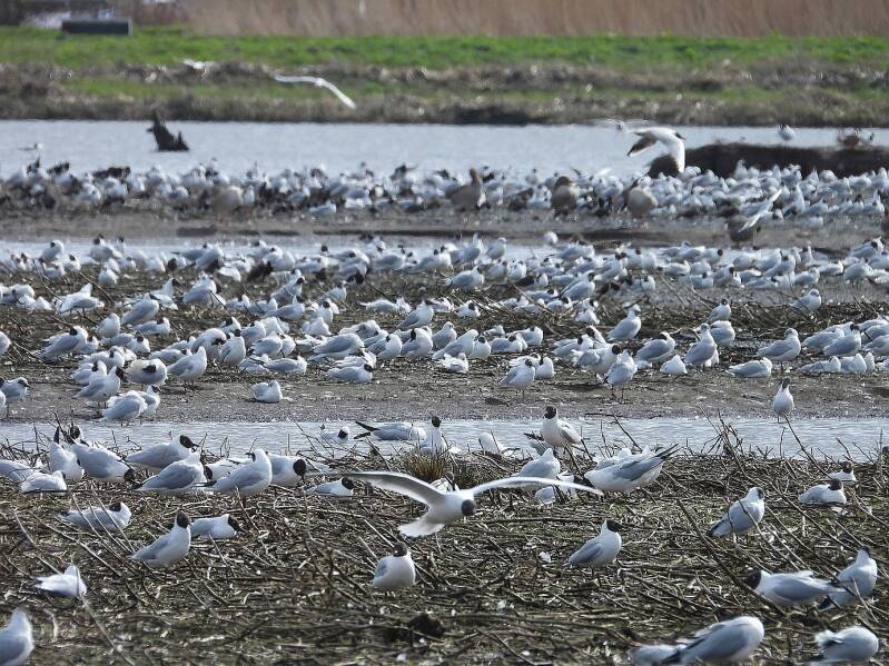 14 maart 2026, Ook in de broedkolonie zelf waren al veel kokmeeuwen aanwezig.
