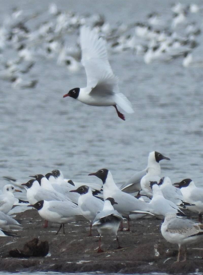13 maart 2026. De laatste jaren broeden er vrijwel ieder jaar een of twee paartjes zwartkopmeeuwen tussen de kokmeeuwen.
