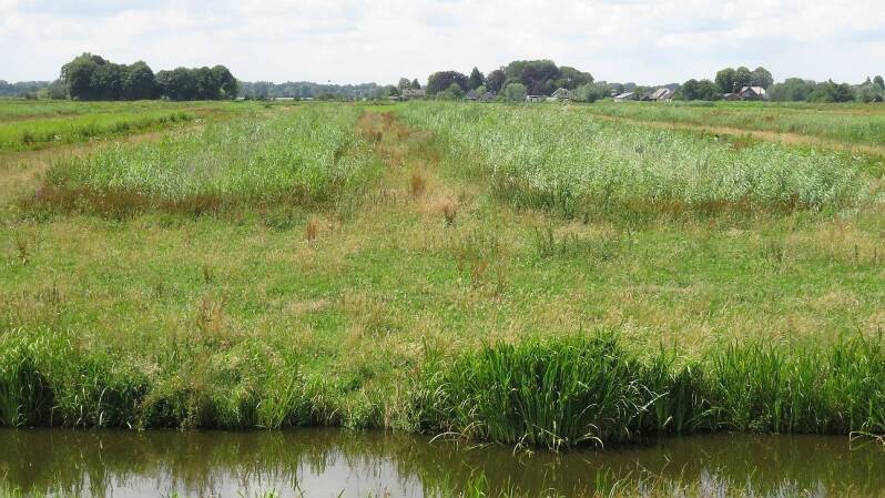 In Juli 2018 is riet geplant in de nieuw gegraven sloten. Helaas sloeg de groei niet aan door omstandigheden als droogte en vraat ondanks de beschermende maatregelen die werden getroffen. We zijn nu 4 jaar verder en de rietgroei is in diverse nieuw gegraven sloten toch aardig op gang gekomen.  Spontaan.