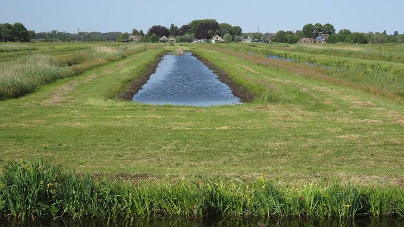Het middeldeel van een perceel in het polderdeel Oukoop Noord verlaagd om er rietmoeras te gaan ontwikkelen.