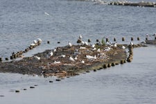 aanbrengen van afgeschreven surfplanken. Kokmeeuwen maken er dankbaar gebruik van en broeden er op.