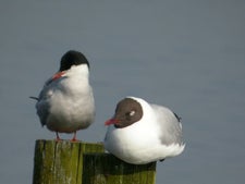 De kokmeeuwen van dit eilandje waren in paniek door een overvliegende buizerd.