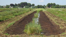Het middeldeel van een perceel in het polderdeel Oukoop Noord verlaagd om er rietmoeras te gaan ontwikkelen.