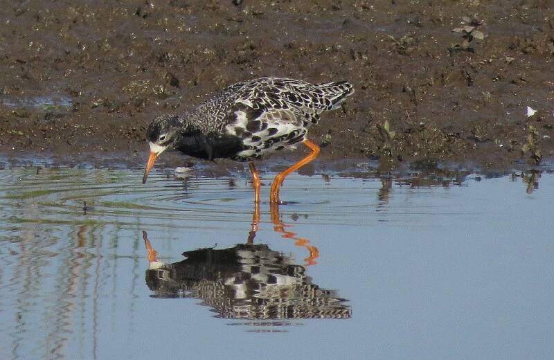 Een van vijf oeverlopers die op 9 mei 2020 langs de rand van een slikkig oevertje aanwezig waren op de Hooge Boezem bij Haastrecht.