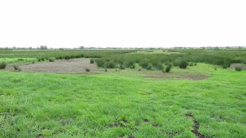 Een 2e plasdrasperceel welke tot voor kort plasdras stond maar door de droogte is drooggevallen. Foto: 2 mei 2020