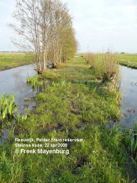 Foto rechts: De Steinse kade op 22 april 2008. Slecht begaanbaar door het vele gegraaf van muskusratten. Al dat gegraaf heeft ook een negatieve invloed gehad op de groeiplaats van wilde kievitsbloemen. In het voorjaar van 2012 telde ik nog maar een 25-tal bloeiende exemplaren. Dat was blijkbaar een slecht jaar voor de bloei, want in het voorjaar van 2017 werden bijna 100 bloeiende exemplaren geteld.