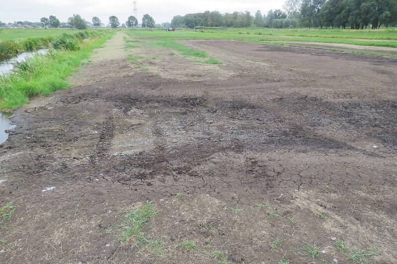 Geplagde oever op 14 juni 2025. Ook is er al kruidenrijk hooi gestrooid om versneld een soortenrijke