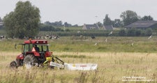 In de uiterwaard langs de gekanaliseerde Hollandse IJssel ter hoogte van het voormalige gemaal van de voormalige boezemin de polder Stein Zuid zochten twee zwartkopmeeuwen tussen de kokmeeuwen naar voedsel op een stuk grasland wat wasbemest met drijfmest via het injecteren. Foto: 27 maart 2018.