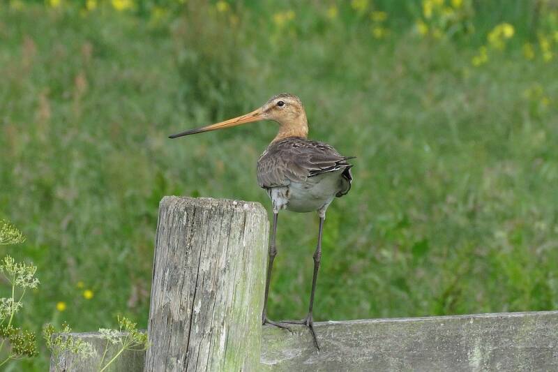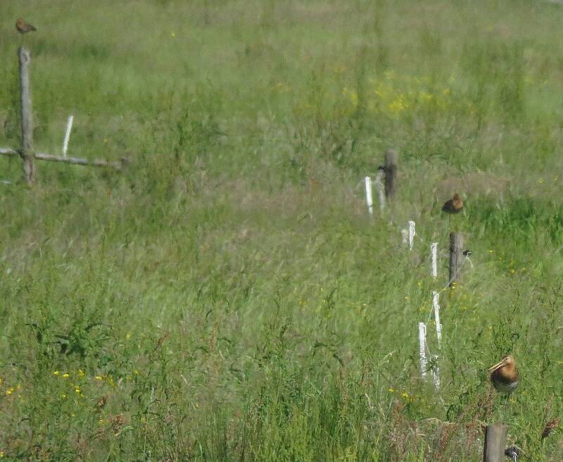 In totaal telde ik 3 wakende en alarmerende grutto's en 1 tureluur op landhekken en palen.